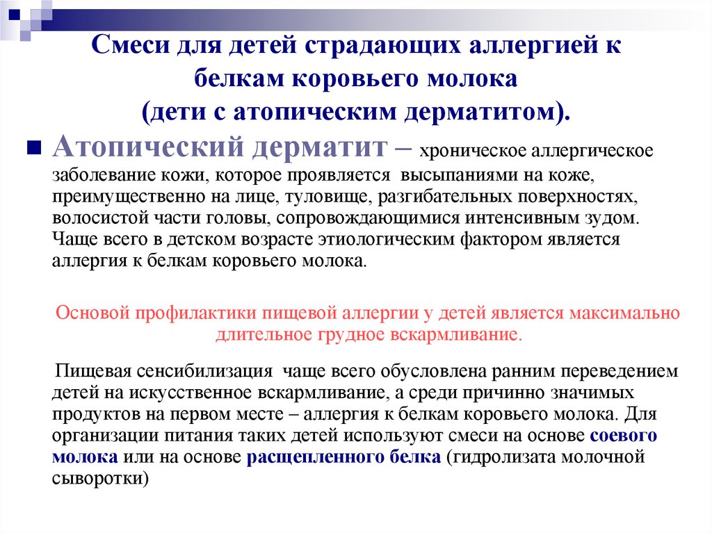 - Диетотерапия: исключение аллергенных продуктов из рациона мамы (при грудном вскармливании) или переход на специальные гипоаллергенные смеси.