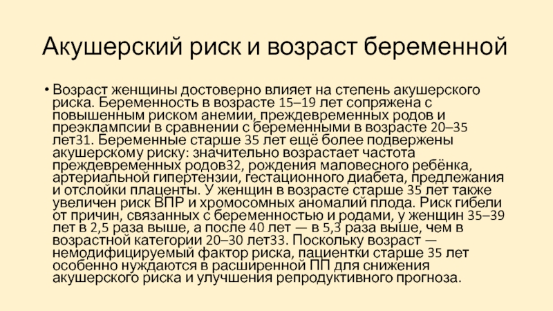 - Повышенный риск генетических аномалий
