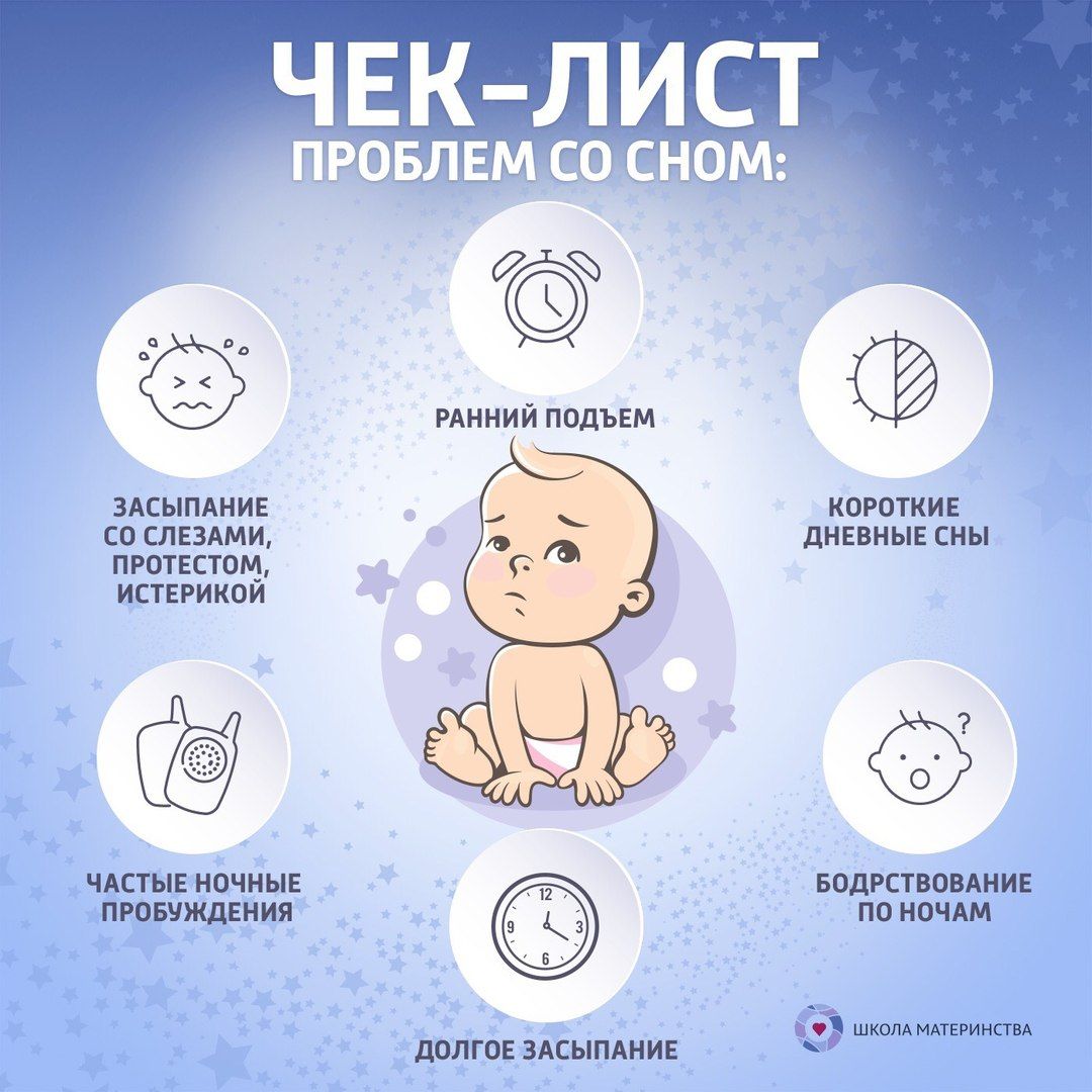 Кроме того, некоторые дети просто не умеют засыпать самостоятельно. Если родители всегда укачивают или кормят ребенка до полного засыпания, он может не знать, как уснуть без их помощи. Когда такой малыш просыпается ночью (а это происходит у всех детей между циклами сна), он не может снова заснуть без привычного ритуала.