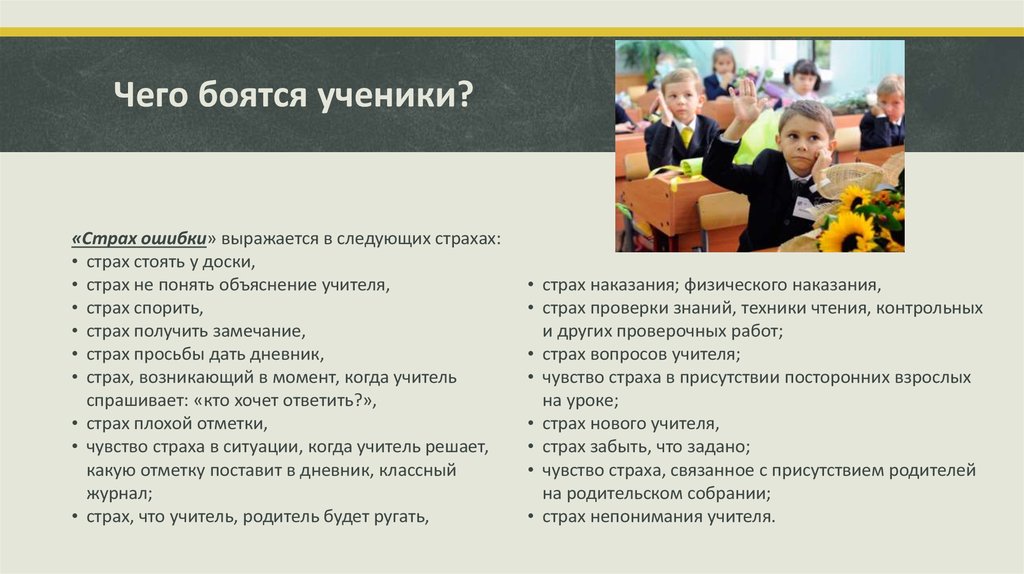 Знание о детских страхах помогает нам подготовить ребенка к социальному взаимодействию. Например, если ребенок боится выступать перед публикой, мы можем постепенно приучать его к этому, начиная с малого — рассказать стишок перед семьей, потом перед классом, и так далее.