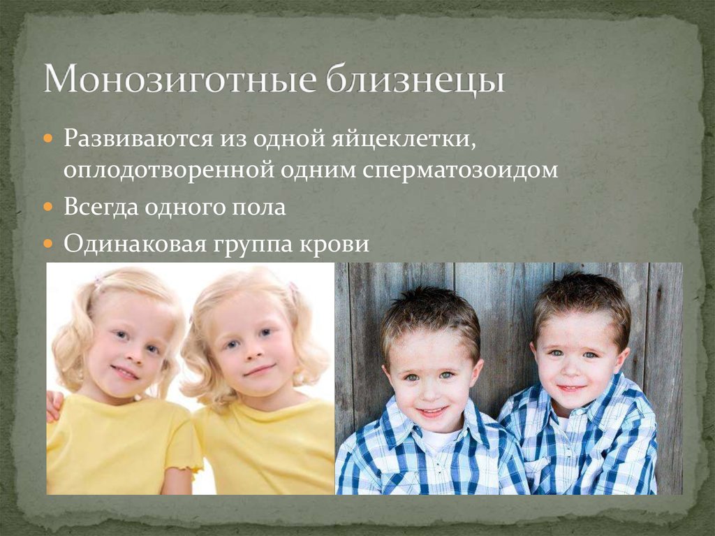 С медицинской точки зрения, что такое близнецы однояйцевые? Это уникальная возможность для изучения влияния генов на развитие различных заболеваний. Если у одного из однояйцевых близнецов диагностируют генетическое заболевание, риск развития того же заболевания у второго близнеца очень высок.