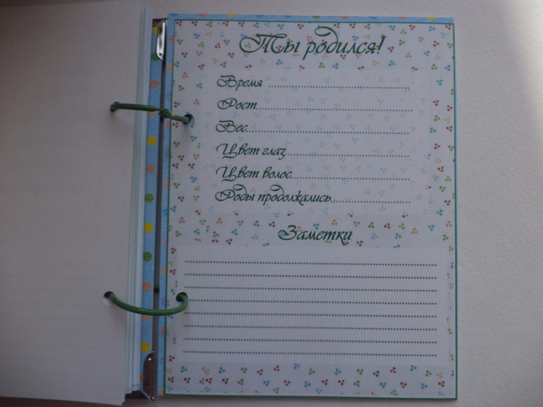 Например, страница «Первое УЗИ» может включать не только саму фотографию, но и ваши ощущения, записанные на красивой карточке, приклеенной рядом. Добавьте ленточку, имитирующую измерительную ленту, чтобы показать размер малыша. А сверху — милую наклейку с изображением аиста. Получится настоящая история в картинках!