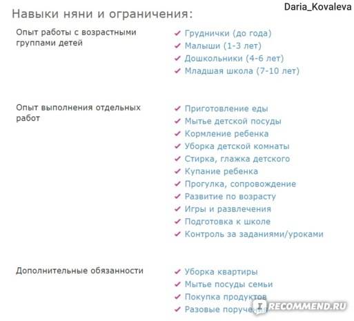 - Описание обязанностей няни (совпадают ли они с вашими ожиданиями?)