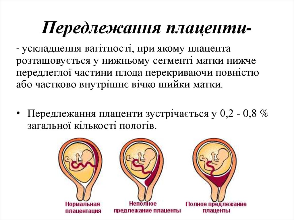 - Миому матки. Эти доброкачественные опухоли могут «вытеснять» плаценту вниз.