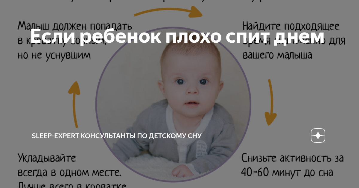 Обычно в этом возрасте родители замечают, что дети могут спать глубже ночью, чем днем, но обычно это происходит из-за уровня активности вокруг них во время сна. Чтобы поддержать сон младенца в течение дня, постарайтесь уменьшить стимуляцию, поддерживая полумрак в комнате (не затемнение, темнота в пещере), низкий уровень звука и активности, а также поддерживайте пищеварение, начиная сон в вертикальном положении (держите ребенка, носите ребенка, используя рок-н-пьесу под присмотром). После того, как ваш ребенок крепко заснул, вы можете попытаться перевести его в горизонтальное положение на спине, но имейте в виду, что когда жидкость во внутреннем ухе смещается из положения, лежащего назад, это часто разбудит ребенка.