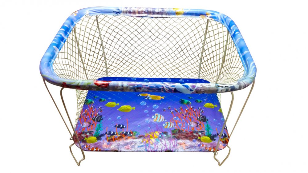 Стенки таких манежей выполнены из прочной сетки на металлическом каркасе. Бортики и дно – мягкие, чтобы ребенок не ударился. К стенкам часто прикрепляют кольца, чтобы было удобно держаться.