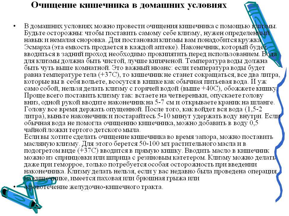 Очистительные клизмы проводят для удаления кишечного содержимого.