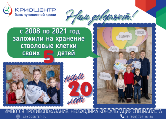 «КриоЦентр» — ведущий банк пуповинной крови, соответствующий всем требованиям международных и Российских стандартов. Учреждение работает с 2003 года и обладает новейшим технологическим оборудованием, высокопрофессиональным кадровым составом, собственной курьерской службой для доставки пуповинной крови из отдаленных регионов страны и зарубежья. В банке организовано надежное современное хранилище с круглосуточной охраной и автоматизированной системой учета. При оплате услуг предусмотрен широкий выбор тарифных планов.