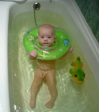 Теперь о самом главном — технике безопасности. Никогда, слышите, никогда не оставляйте малыша одного в ванной, даже на секунду! Даже если он в круге, даже если вода едва покрывает дно ванночки. Несчастный случай может произойти в мгновение ока. Всегда держите одну руку на малыше, а другой выполняйте все необходимые манипуляции.