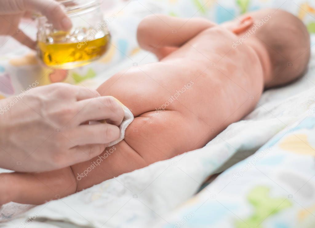 - Аккуратно помассируйте попку малыша, уделяя особое внимание складочкам.