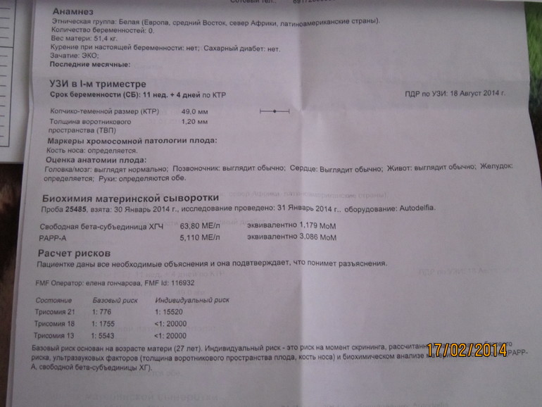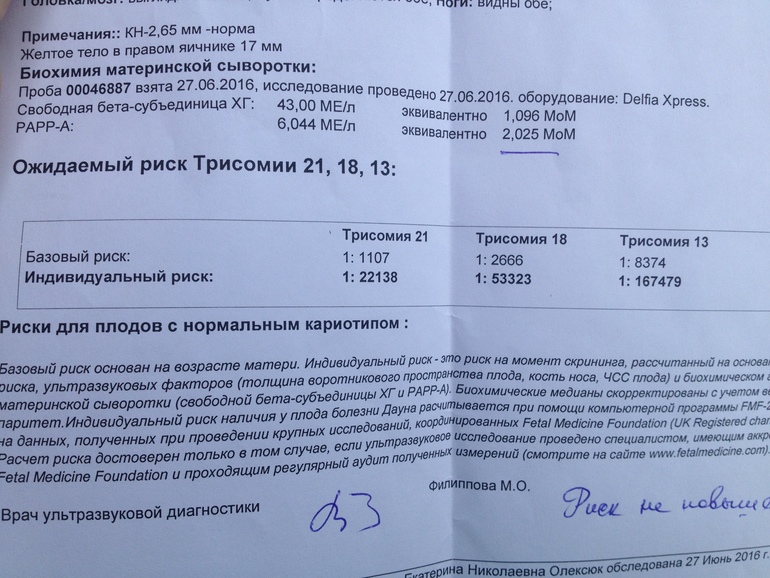 - PAPP-A (Π°ΡΡΠΎΡΠΈΠΈΡΠΎΠ²Π°Π½Π½ΡΠΉ Ρ Π±Π΅ΡΠ΅ΠΌΠ΅Π½Π½ΠΎΡΡΡΡ ΠΏΡΠΎΡΠ΅ΠΈΠ½ ΠΏΠ»Π°Π·ΠΌΡ A) ΡΡΡΠ΅ΡΡΠ²Π΅Π½Π½ΠΎ ΡΠ½ΠΈΠΆΠ΅Π½ (ΠΌΠ΅Π½Π΅Π΅ 0,4 ΠΠΎΠ) — ΠΌΠΎΠΆΠ΅Ρ ΡΠΈΠ³Π½Π°Π»ΠΈΠ·ΠΈΡΠΎΠ²Π°ΡΡ ΠΎ ΡΠΈΡΠΊΠ΅ Π·Π°Π΄Π΅ΡΠΆΠΊΠΈ Π²Π½ΡΡΡΠΈΡΡΡΠΎΠ±Π½ΠΎΠ³ΠΎ ΡΠ°Π·Π²ΠΈΡΠΈΡ.
