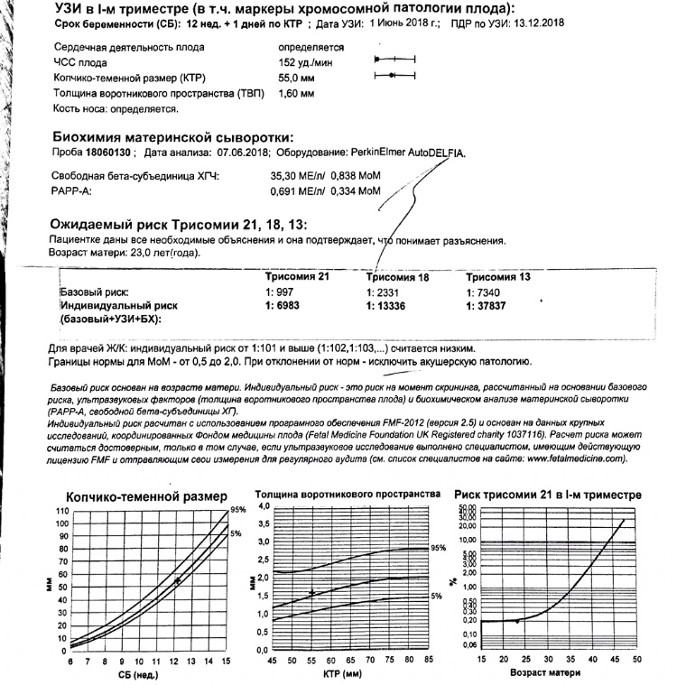 ΠΡΠ»ΠΈ Π²Π°ΡΠΈ ΡΠ΅Π·ΡΠ»ΡΡΠ°ΡΡ ΠΎΡΠΊΠ»ΠΎΠ½ΡΡΡΡΡ ΠΎΡ Π½ΠΎΡΠΌΡ Π±ΠΈΠΎΡ ΠΈΠΌΠΈΠΈ ΠΌΠ°ΡΠ΅ΡΠΈΠ½ΡΠΊΠΎΠΉ ΡΡΠ²ΠΎΡΠΎΡΠΊΠΈ, ΠΏΠ΅ΡΠ²ΠΎΠ΅ ΠΏΡΠ°Π²ΠΈΠ»ΠΎ — Π½Π΅ ΠΏΠ°Π½ΠΈΠΊΠΎΠ²Π°ΡΡ! ΠΠΎΠΌΠ½ΠΈΡΠ΅, ΡΡΠΎ ΡΠΊΡΠΈΠ½ΠΈΠ½Π³ — ΡΡΠΎ Π½Π΅ Π΄ΠΈΠ°Π³Π½ΠΎΠ·, Π° Π»ΠΈΡΡ ΠΎΡΠ΅Π½ΠΊΠ° ΡΠΈΡΠΊΠΎΠ². Π§Π°ΡΡΠΎ Π²ΡΠ°ΡΠΈ Π½Π°Π·Π½Π°ΡΠ°ΡΡ Π΄ΠΎΠΏΠΎΠ»Π½ΠΈΡΠ΅Π»ΡΠ½ΡΠ΅ ΠΈΡΡΠ»Π΅Π΄ΠΎΠ²Π°Π½ΠΈΡ Π΄Π»Ρ ΡΡΠΎΡΠ½Π΅Π½ΠΈΡ ΡΠΈΡΡΠ°ΡΠΈΠΈ. ΠΡΠΎ ΠΌΠΎΠΆΠ΅Ρ Π±ΡΡΡ Π½Π΅ΠΈΠ½Π²Π°Π·ΠΈΠ²Π½ΡΠΉ ΠΏΡΠ΅Π½Π°ΡΠ°Π»ΡΠ½ΡΠΉ ΡΠ΅ΡΡ (ΠΠΠΠ’), ΠΊΠΎΡΠΎΡΡΠΉ Π°Π½Π°Π»ΠΈΠ·ΠΈΡΡΠ΅Ρ ΠΠΠ ΠΏΠ»ΠΎΠ΄Π° Π² ΠΊΡΠΎΠ²ΠΈ ΠΌΠ°ΡΠ΅ΡΠΈ, ΠΈΠ»ΠΈ Π±ΠΎΠ»Π΅Π΅ Π΄Π΅ΡΠ°Π»ΡΠ½ΠΎΠ΅ Π£ΠΠ.