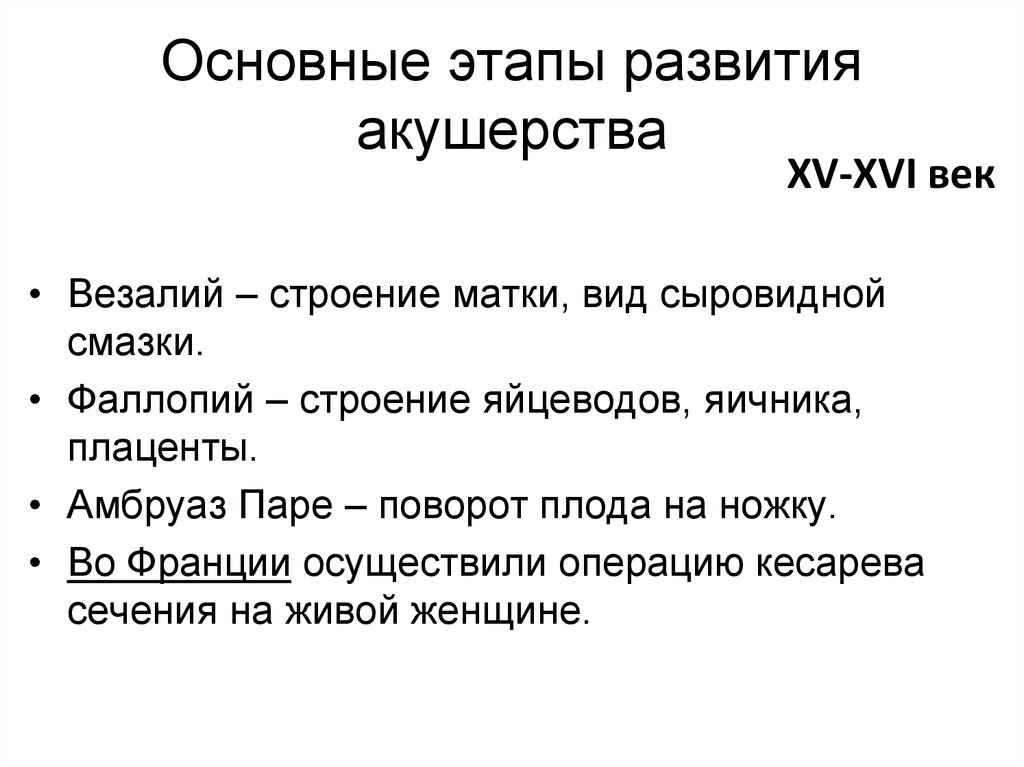 Давайте теперь пробежимся по ключевым моментам, которые изменили лицо акушерства и гинекологии: