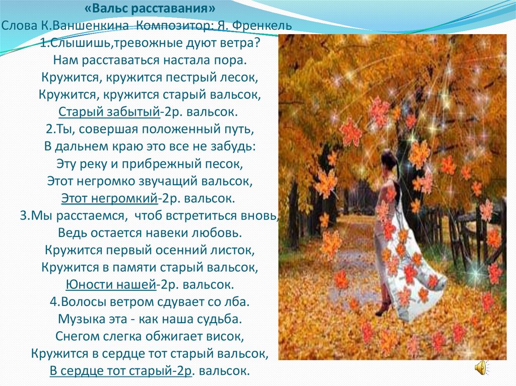 «Закружилась листва золотая В розоватой воде на пруду, Словно бабочек легкая стая С замираньем летит на звезду.»