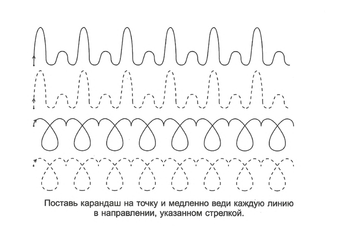 Задания со штриховкой выполняются на нелинованной бумаге. Ребенок должен стараться не отрывать ручку или карандаш от бумаги и не прерывать линии.