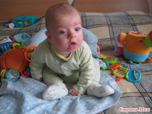 Другие груднички, наоборот, с самого рождения подвижны, самостоятельно начинают переворачиваться, вертят головкой во все стороны, машут ручками и ножками, под влиянием этих движений укрепляется и позвоночник, таких малышей аккуратно и на несколько минут можно присаживать уже ближе к 5 месяцам.