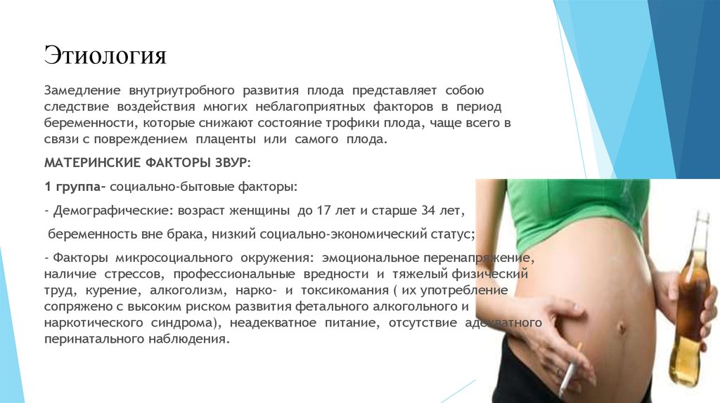 - Вредные привычки мамы. Курение, алкоголь, неправильное питание — все это может привести к СЗРП.