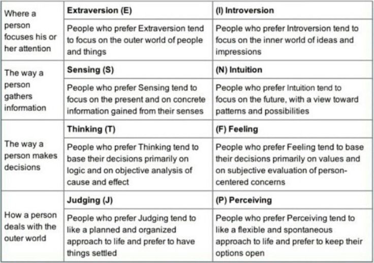 Согласно теории психологического типа Юнга, людей можно охарактеризовать с помощью следующих трех критериев: